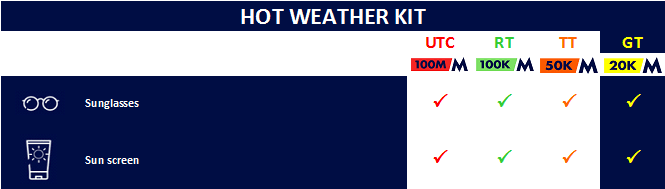 Depending on the weather conditions, the organization may request the addition of a COLD WEATHER KIT or a HOT WEATHER KIT.